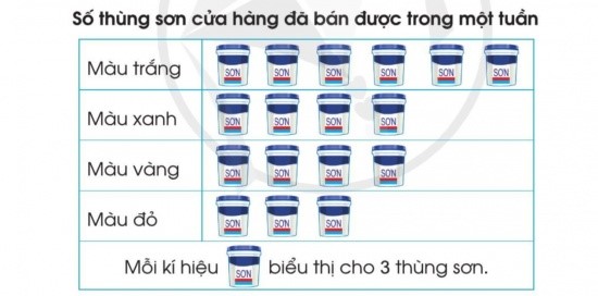 – Cửa hàng đã bán được số lượng thùng sơn bằng nhau ở những màu nào?