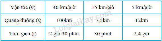 Vận tốc cần điền vào ô trống thứ nhất là :