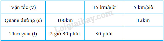 Vận tốc cần điền vào ô trống thứ nhất là :
