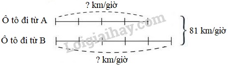 – Tìm vận tốc mỗi xe theo dạng toán tìm hai số khi biết tổng và tỉ số.