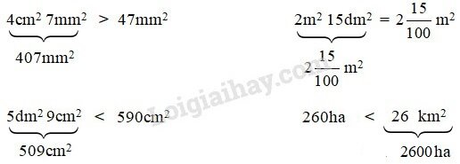 Đổi các số đo về cùng đơn vị đo rồi so sánh kết quả với nhau.