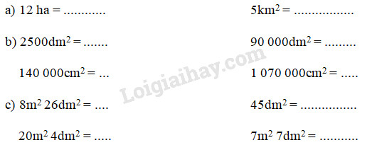 Viết các số đo sau dưới dạng số đo có đơn vị là mét vuông :