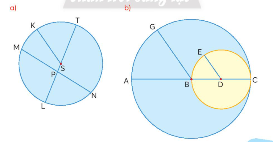 Nêu tên tâm, các bán kính, đường kính có trong mỗi hình tròn sau.