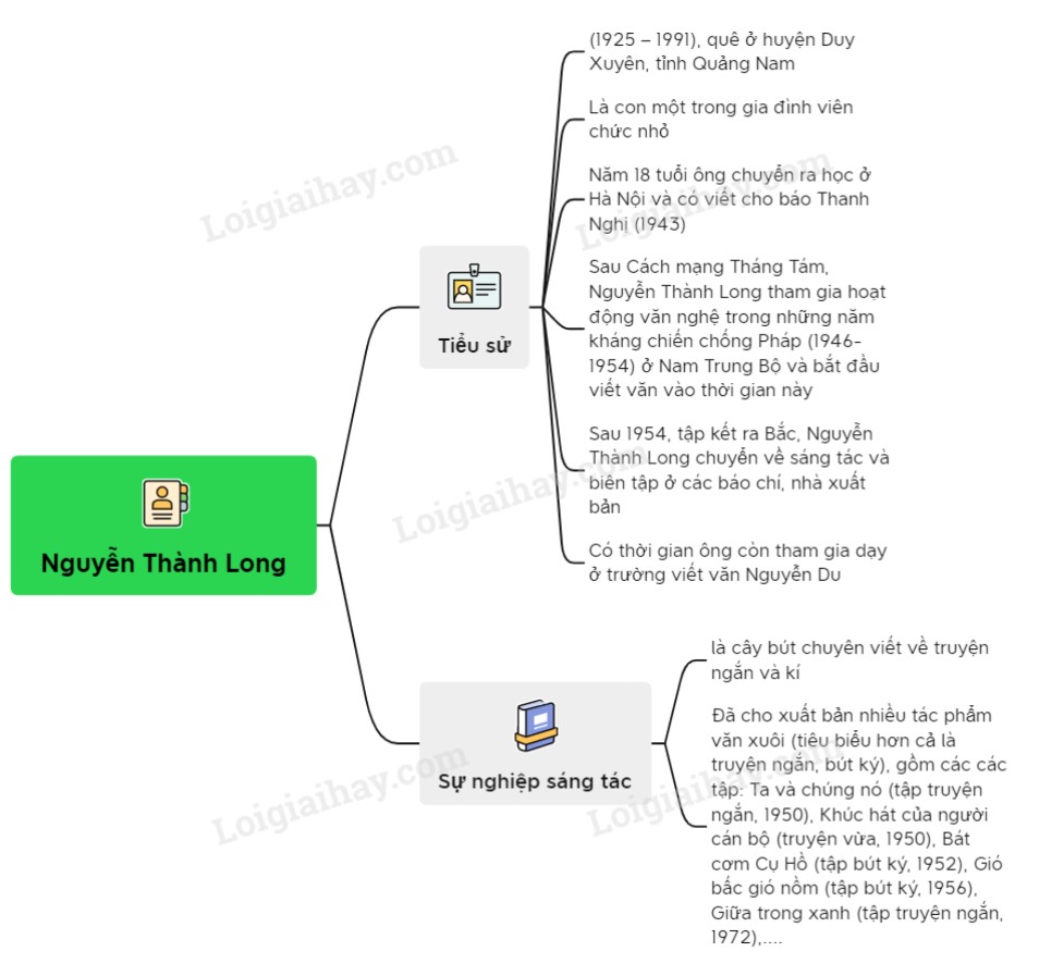 Sơ đồ tư duy về tác giả Nguyễn Thành Long: