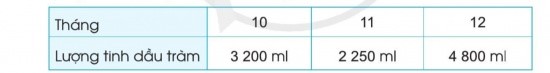 Dưới đây là bảng số liệu thống kê lượng tinh dầu tràm của một cửa hàng đã bán được trong ba tháng cuối năm.