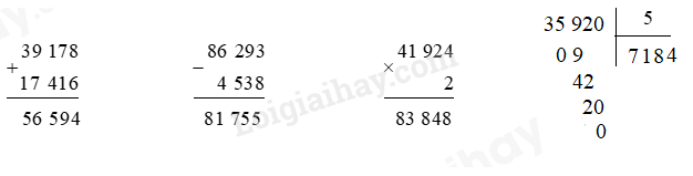 Nhẩm lại cách đặt tính và tính các phép toán đã học rồi trình bày bài.
