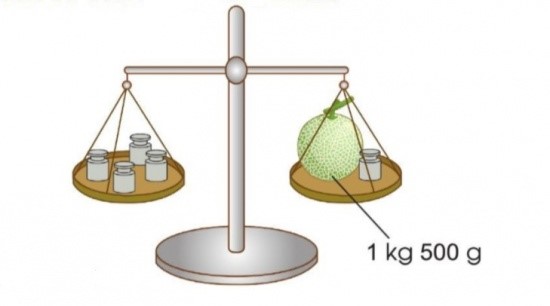 Ta thấy cân nặng của ba quả cân bằng cân nặng của 1 quả dưa.