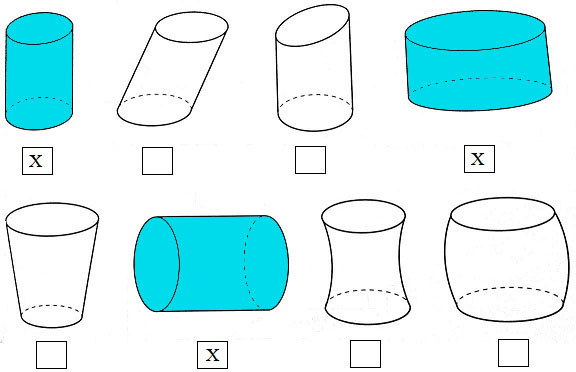 Ghi dấu X vào ô trống đặt dưới hình trụ. Tô màu hình trụ đó.