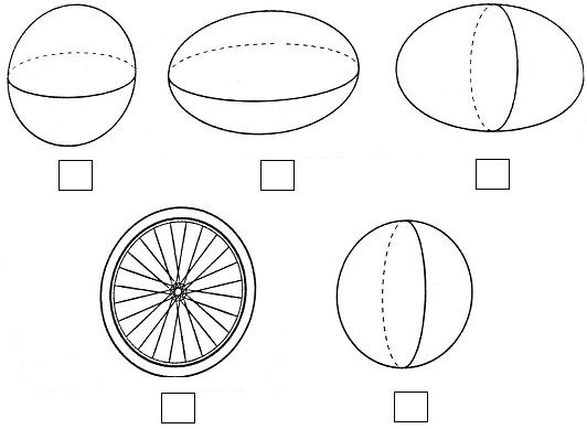 Quan sát hình vẽ để xác định hình cầu trong các hình đã cho, sau đó tô màu hình cầu đó.
