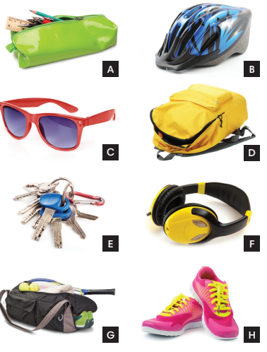 3. headphones                      7. a sports bag