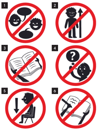 (Nhìn vào những bức tranh và đưa ra những mệnh lệnh phủ định. Sử dụng các cụm từ bên dưới.)