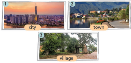 (Nhìn vào những bức tranh sau. Nơi nào ở thành phố và nơi nào ở nông thôn?)