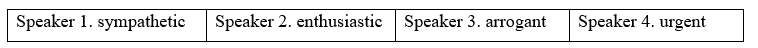 6. Listen to four monologues. Decide what tone of voice each speaker is using. Choose from the adjectives in exercise 5.