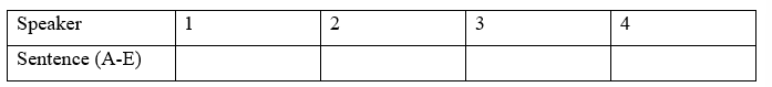 7. Listening again. Match speakers 1-4 with sentences A-E. There is one extra sentence. Use your answer to exercises 5 and 6 to help you.