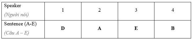 (Nghe lại. Nối người nói từ 1-4 với câu A-E. Có một câu bì thừa. Hãy sử dụng câu trả lời của bạn cho bài tập 5 và 6 để giúp bạn.)