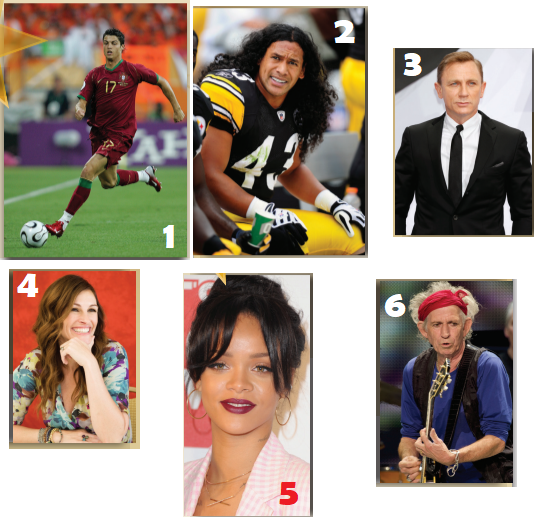 (Xem ảnh của sáu người nổi tiếng và đọc văn bản. Trong những bức ảnh nào bạn có thể nhìn thấy bộ phận của cơ thể trong hộp?)