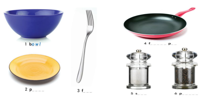 (Nhìn vào các bức ảnh và hoàn thành các từ.)