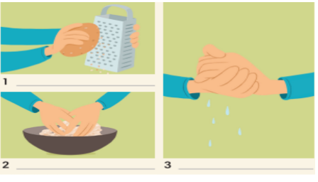 English people eat a lot of potatoes but my favourite potato recipe is from Switzerland. It’s called rosti. It’s easy and very quick – ten minutes! The ingredients are two potatoes and half an onion. Grate the potatoes and onion and mix in a bowl. Add salt and pepper. Squeeze out some water. Then put some oil in a frying pan. Add the potatoes and onion to the hot oil. After a few minutes, turn over the rosti and continue to cook.