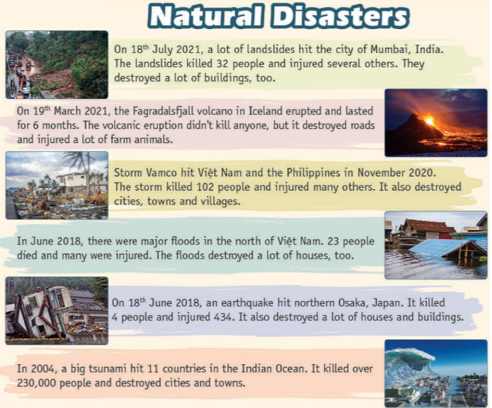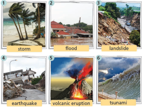 5. Look at the pictures. What natural disasters are they? Listen and read to find out.