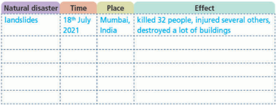 7. Use the information in the table in Exercise 6 to present the natural disasters to the class.