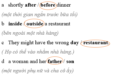 (Trong bài nghe, đôi khi bạn cần xác định bối cảnh của cuộc trò chuyện. Bối cảnh được ngụ ý chứ không phải bắt đầu, vì vậy bạn phải lắng nghe manh mối. Thông tin bạn cần có thể là: