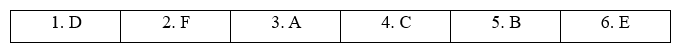 (Nghe cuộc phỏng vấn về chuyến thăm Vat Phou, Di sản Thế giới ở Lào. Sắp xếp các địa điểm (A-F) mà người nói đề cập theo đúng thứ tự.)