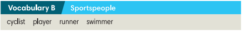 2. Study the Vocabulary B box, Match the sports people with the right sports in the Vocabulary A box. Which word can go with more than one sport?