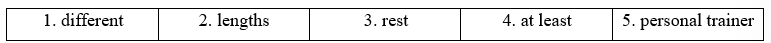 (Lắng nghe cuộc đối thoại giữa một người phụ nữ và một huấn luyện viên thể dục về cách tập thể dục. Hoàn thành biểu đồ (1-5). Viết KHÔNG QUÁ HAI TỪ cho mỗi câu trả lời.)