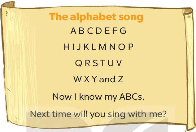 1. Listen, point and sing. 2. Read and complete. 3. Count the letters.