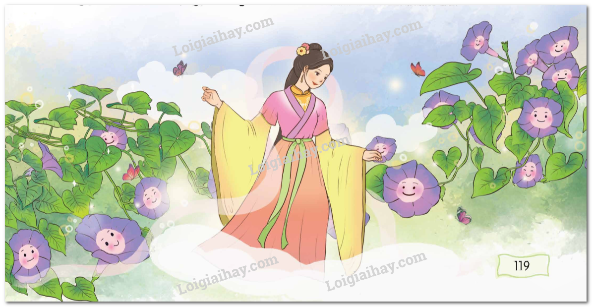 – Cô sẽ cho cháu bốn viên ngọc có thể hoá phép ra các màu yêu thích. Tôi sung sướng nói lời cảm ơn cô tiên rồi vươn lên cao.