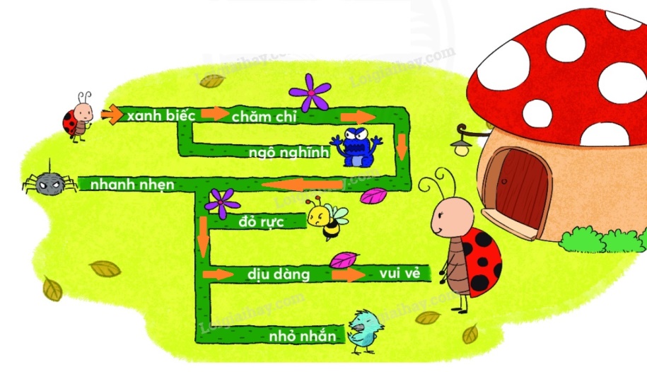 Nói 1 – 2 câu có từ ngữ tìm được trên đường về nhà của bọ rùa.