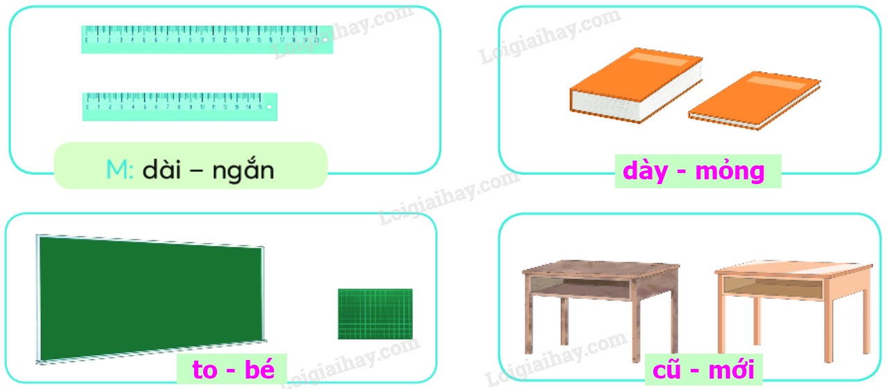 Các cặp từ cần tìm là: dày – mỏng, to – bé, cũ – mới