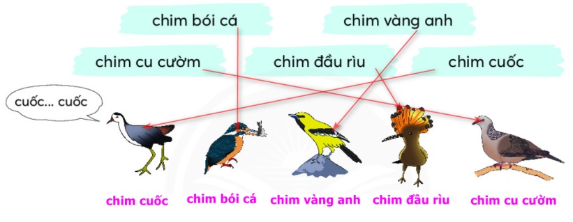 b. Chọn tên gọi phù hợp với hình vẽ của từng loài chim dưới đây: