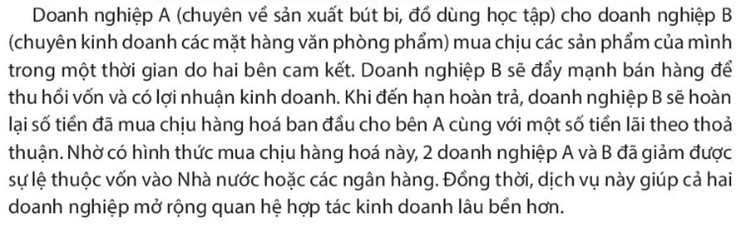 – Đọc thông tin và xác định vai trò trong mối quan hệ tín dụng giữa doanh nghiệp A và B.