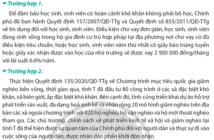 – Đọc trường hợp 1, 2 kết hợp với hiểu biết của bản thân về tín dụng nhà nước, nêu vai trò của Nhà nước trong mối quan hệ tín dụng nhà nước.