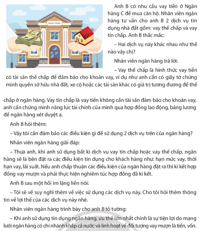 – Dựa vào câu trả lời của nhân viên ngân hàng, nêu những điều kiện mà anh B cần đáp ứng để sử dụng các dịch vụ tín dụng mà Ngân hàng C cung cấp.
