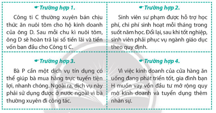 – Đọc kĩ các trường hợp và xác định dịch vụ tín dụng tương ứng phù hợp với từng trường hợp