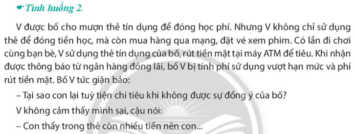 – Nếu là người thân của V và chứng kiến tình huống trên, em sẽ trao đổi như thế nào để V biết cách sử dụng dịch vụ tín dụng có trách nhiệm?