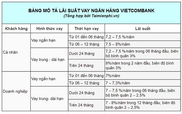 + Loại hình cho vay: Vay thế chấp, vay tín chấp, vay trả góp, vay thấu chi