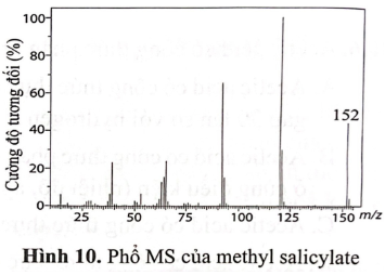 Methyl salicylate thường có mặt trong thành phần của một số thuốc  giảm đau, thuốc xoa bóp, cao dán dùng điều trị đau lưng, căng cơ, bong gân,… Thành phần phần trăm về khối lượng các nguyên tố trong phân tử methyl salicylate như sau: 63,16% C; 5,26% H và 31,58% O. Phổ MS của methyl salicylate được cho như Hình 10. Xác định công thức thực nghiệm và công thức phân tử của methyl salicylate.