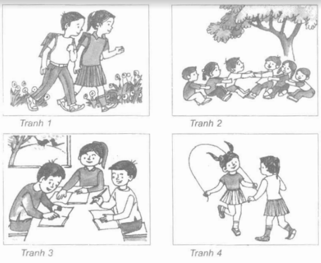 – Tranh 4: Hai bạn nữ cùng chơi nhảy dây