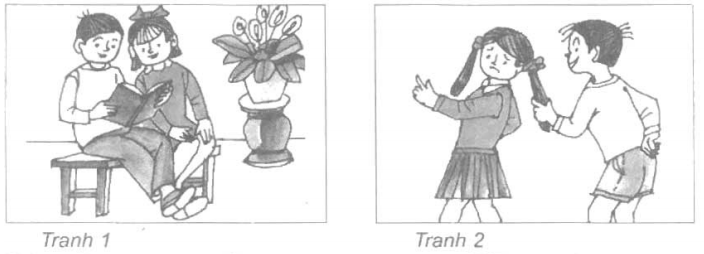 – Tranh 2: Bạn nam đùa nghịch, dựt tóc bạn nữ