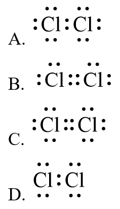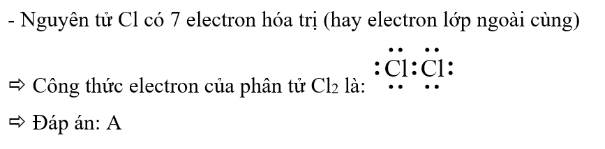 Biết nguyên tử chlorine có 7 electron hoá trị, công thức electron của phân tử chlorine là