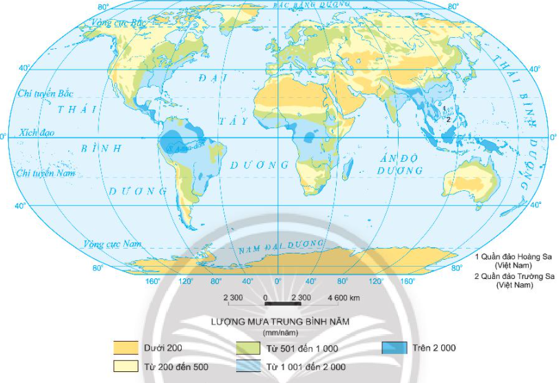 – Mưa tương đối ít ở 2 vùng chí tuyến Bắc và Nam (lượng mưa khoảng 600 mm).