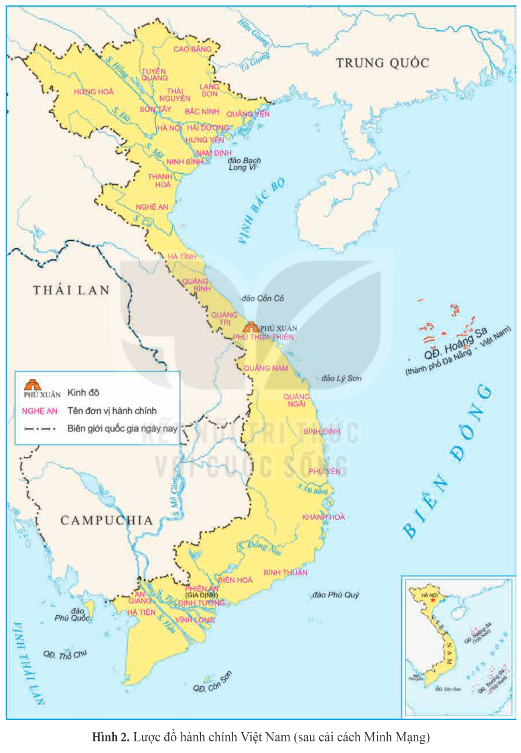 Nêu bối cảnh lịch sử của cuộc cải cách Minh Mạng. Khai thác lược đồ Hình 2, nêu nhận xét của em về đơn vị hành chính Việt Nam sau cải cách Minh Mạng