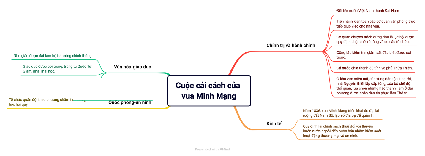 1. Vẽ sơ đồ tư duy về nội dung của cuộc cải cách của vua Minh Mang