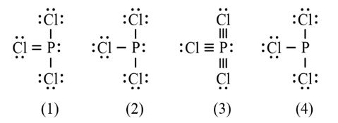 Công thức nào sau đây ứng với công thức Lewis của phân tử PCl3