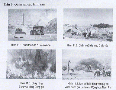 Hãy lựa chọn và trình bày về một trong các vấn đề khai thác thiên nhiên ở châu Phi được thể hiện trong hình.