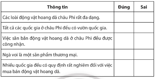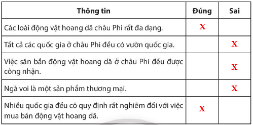 Xác định ý Đúng hoặc Sai cho các thông tin dưới đây bằng cách đánh dấu (x) vào ô tương ứng.