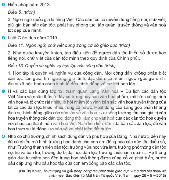 – Thông tin 4: Các dân tộc đều bình đẳng về giáo dục, Đảng, Nhà nước tạo mọi điều kiện để đáp ứng nhu cầu học tập của con em đồng bào các dân tộc thiểu số.